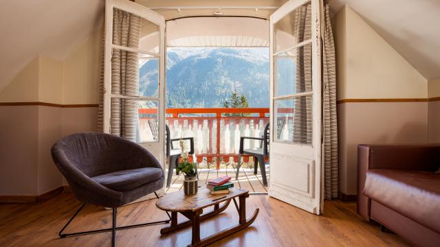 Our hotel has one of the best views of the Mont-Blanc mountain range and faces the Savoy meadows - a playground for children & beginners in winter, and paragliders in summer. With direct access to the Brévent-Flégère ski area, and a bus stop outside our door, you can effortlessly go to any of the Chamonix resorts such as Les Grands Montets, Le Tour Balme, Les Houches or Les Planards.